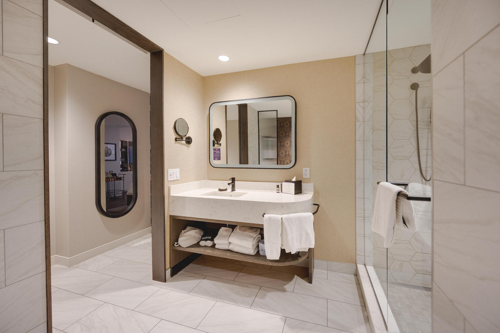 The lobby sets the tone right away. Plush seating, bold artwork, and playful design choices give the space its edge. I worked between wide compositions to show scale and tighter frames to highlight the details that make the hotel feel unique. It is polished but not precious, elevated but still welcoming.